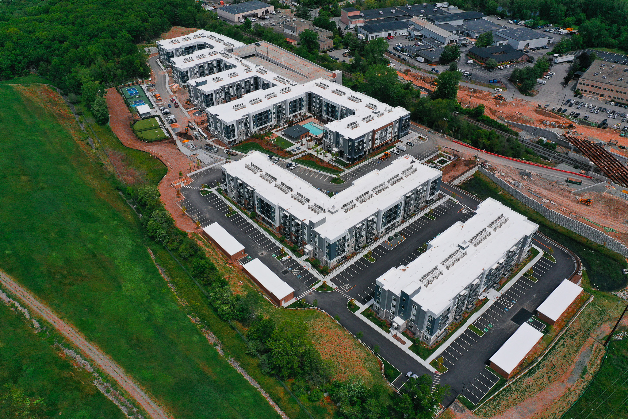 RJOC is proud to have been part of the team assembled by Fairfield Residential to develop this apartment community in Woburn. The project’s civil design focused on creating a serene living environment that deliberately counterbalances the typical demands of city life. This was achieved through careful site planning and the strategic placement of infrastructure to minimize noise and maximize aesthetic appeal. RJOC played a crucial role in ensuring the site’s efficient integration with the surrounding landscape and transportation networks